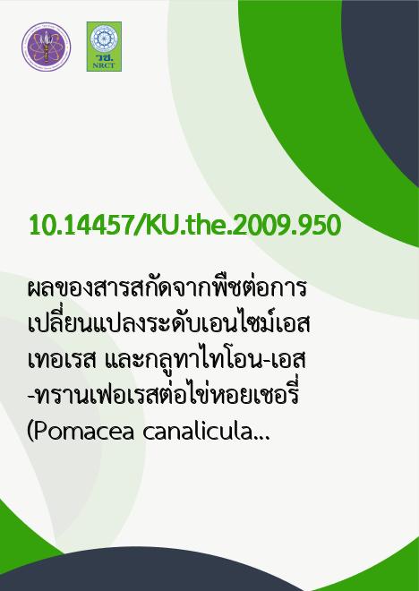 | Keyword | หอยเชอรี่, สารสกัดจากพืช, หัวกลอย, กากเมล็ดชา |