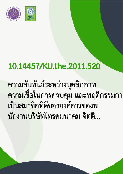 | Title | ความสัมพันธ์ระหว่างบุคลิกภาพ ความเชื่อในการควบคุม และพฤติกรรมการเป็นสมาชิกที่ดีขององค์การของพนักงานบริษัทโทรคมนาคม |