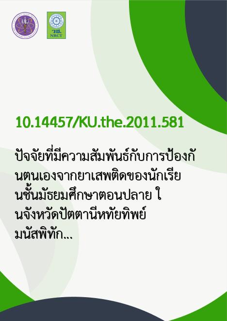ปัจจัยที่มีความสัมพันธ์กับการป้องกันตนเองจากยาเสพติดของนักเรียนชั้นมัธยมศึกษาตอนปลาย ในจังหวัดปัตตานีหทัยทิพย์ มนัสพิทักษ์ชัย |