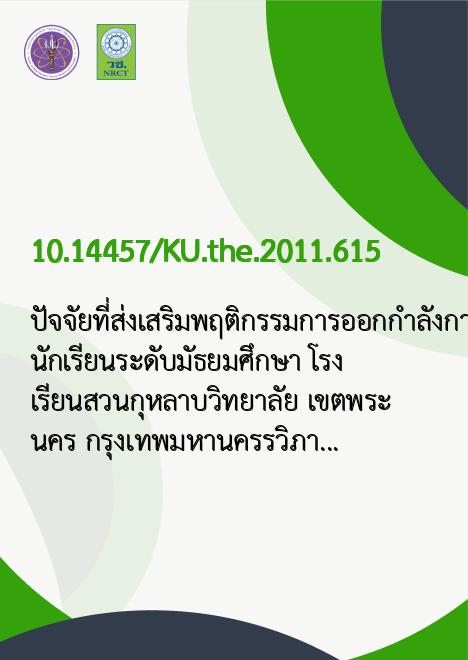 | Title | ปัจจัยที่ส่งเสริมพฤติกรรมการออกกำลังกายของนักเรียนระดับมัธยมศึกษา โรงเรียนสวนกุหลาบวิทยาลัย เขตพระนคร กรุงเทพมหานคร |