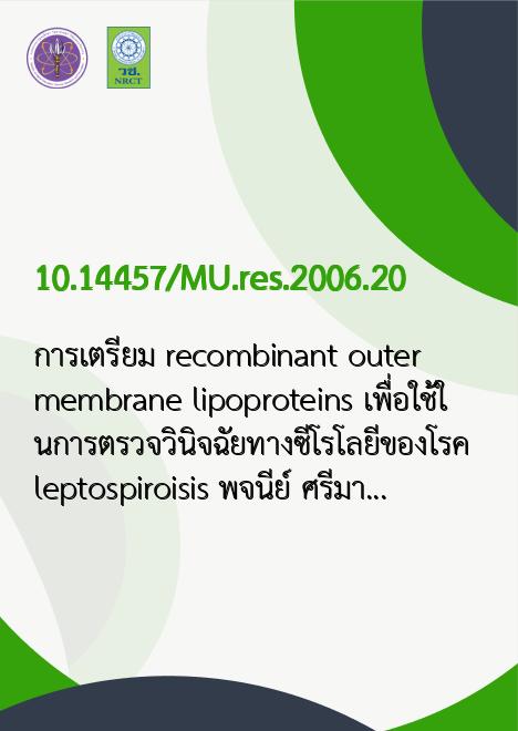 การเตรียม recombinant outer membrane lipoproteins เพื่อใช้ในการตรวจวินิจฉัยทางซีโรโลยีของโรค leptospiroisis /พจนีย์ ศรีมาโนชญ์...[และคนอื่นๆ] |