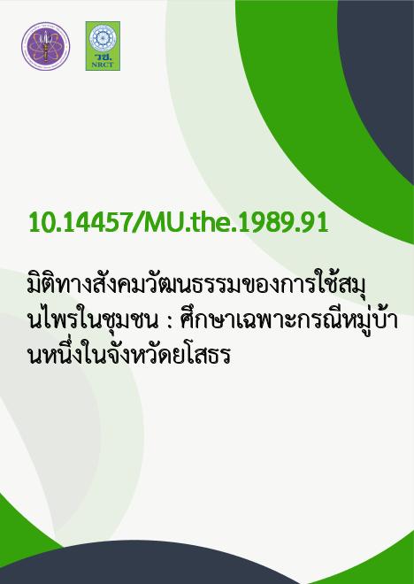 มิติทางสังคมวัฒนธรรมของการใช้สมุนไพรในชุมชน : ศึกษาเฉพาะกรณีหมู่บ้านหนึ่งในจังหวัดยโสธร |