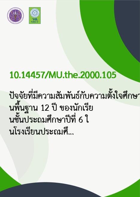 | Keyword | ความตั้งใจ, การศึกษาขั้นพื้นฐาน, โรงเรียนประถมศึกษา, การศึกษาขั้นประถม, นักเรียนประถมศึกษา |
