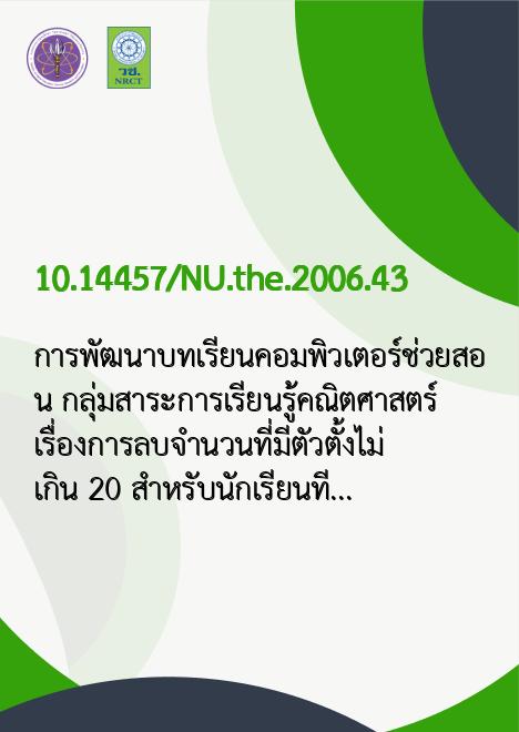 | Keyword | บทเรียนคอมพิวเตอร์ช่วยสอน, กลุ่มสาระการเรียนรู้คณิตศาสตร์, นักเรียนที่มีปัญหาทางการเรียนรู้ |