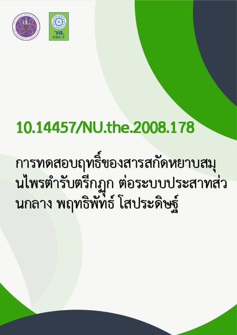 | Keyword | สารสกัดจากตรีกฏุก, ตรีกฏุก [พืช], ระบบประสาทส่วนกลาง |