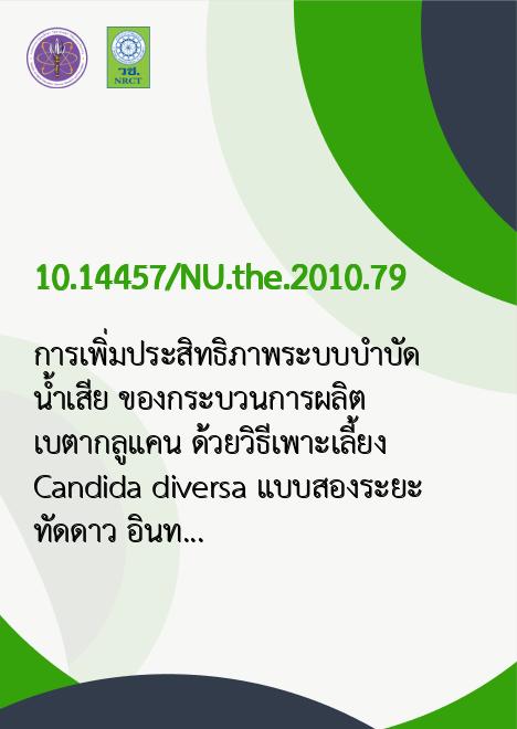 การเพิ่มประสิทธิภาพระบบบำบัดน้ำเสีย ของกระบวนการผลิตเบตากลูแคน ด้วยวิธีเพาะเลี้ยง Candida diversa แบบสองระยะ /ทัดดาว อินทร์ประสิทธิ์ |