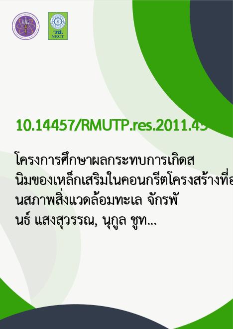 | Keyword | เหล็กเสริมคอนกรีต, สนิมเหล็ก, สิ่งแวดล้อมทางทะเล |