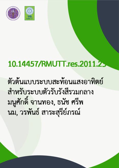 ตัวต้นแบบระบบสะท้อนแสงอาทิตย์ สำหรับระบบตัวรับรังสีรวมกลาง /มนูศักดิ์ จานทอง, ธนัช ศรีพนม, วรพันธ์ สาระสุรีย์ภรณ์ |