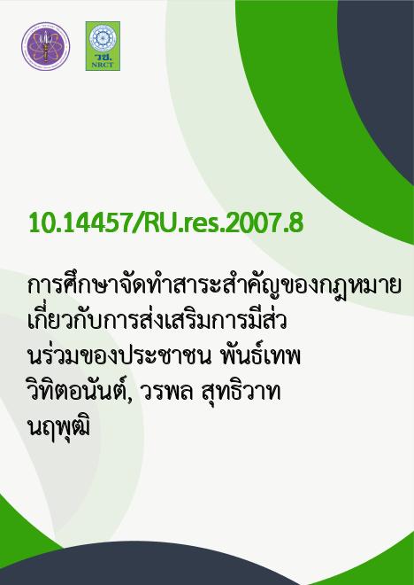 | Title | การศึกษาจัดทำสาระสำคัญของกฎหมายเกี่ยวกับการส่งเสริมการมีส่วนร่วมของประชาชน / |