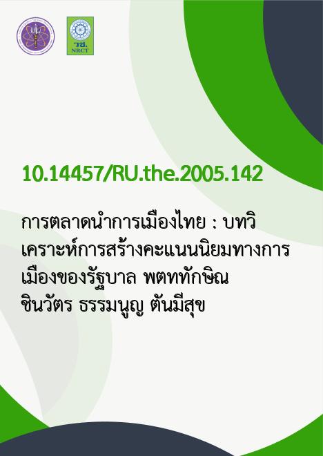 | Title | การตลาดนำการเมืองไทย : บทวิเคราะห์การสร้างคะแนนนิยมทางการเมืองของรัฐบาล พ.ต.ท.ทักษิณ ชินวัตร / |