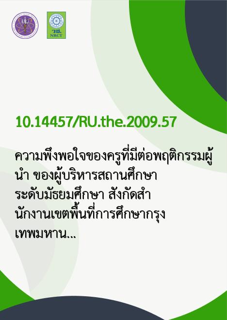 | Keyword | ครู, ผู้บริหารสถานศึกษา, ความพอใจของครู |