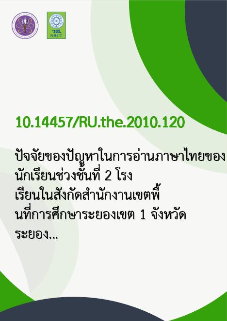 ปัจจัยของปัญหาในการอ่านภาษาไทยของนักเรียนช่วงชั้นที่ 2 โรงเรียนในสังกัดสำนักงานเขตพื้นที่การศึกษาระยองเขต 1 จังหวัดระยอง/กัลยกร บุญนำ |