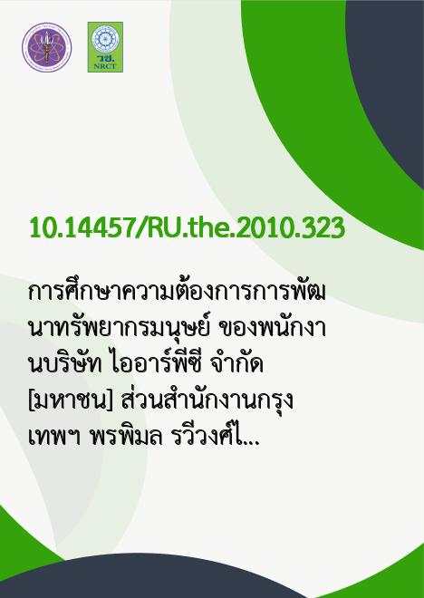การศึกษาความต้องการการพัฒนาทรัพยากรมนุษย์ ของพนักงานบริษัท ไออาร์พีซี จำกัด [มหาชน] ส่วนสำนักงานกรุงเทพฯ /พรพิมล รวีวงศ์ไพบูรณ์ |