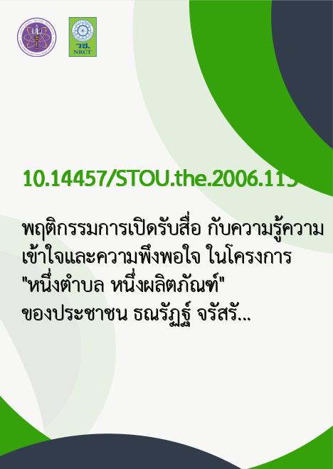 Keyword | กรุงเทพฯ, ความพอใจ, พฤติกรรมการเปิดรับสื่อ, โครงการหนึ่งตำบลหนึ่งผลิตภัณฑ์ |