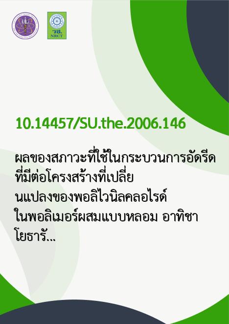 ผลของสภาวะที่ใช้ในกระบวนการอัดรีด ที่มีต่อโครงสร้างที่เปลี่ยนแปลงของพอลิไวนิลคลอไรด์ ในพอลิเมอร์ผสมแบบหลอม /อาทิชา โยธารักษ์ |