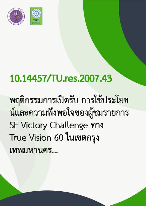 พฤติกรรมการเปิดรับ การใช้ประโยชน์และความพึงพอใจของผู้ชมรายการ SF Victory Challenge ทาง True Vision 60 ในเขตกรุงเทพมหานครชัยภัทร โสทัด |