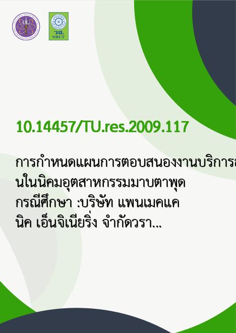 | Title | การกำหนดแผนการตอบสนองงานบริการสำหรับโรงงานในนิคมอุตสาหกรรมมาบตาพุด กรณีศึกษา : |