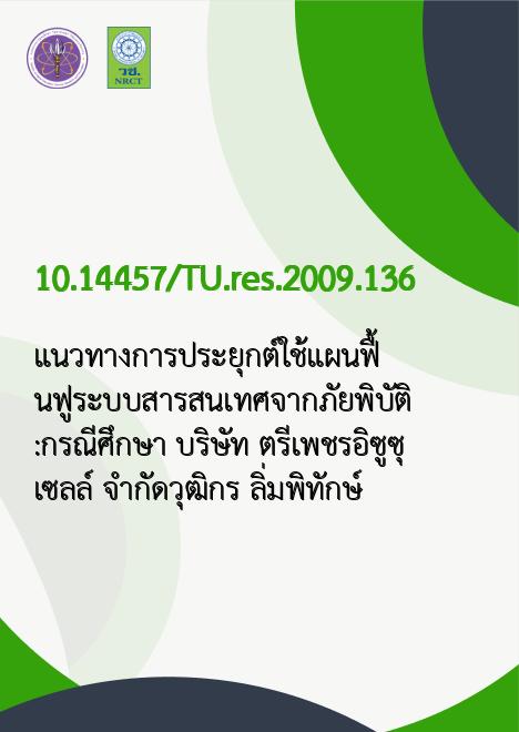 แนวทางการประยุกต์ใช้แผนฟื้นฟูระบบสารสนเทศจากภัยพิบัติ :กรณีศึกษา บริษัท ตรีเพชรอิซูซุเซลล์ จำกัดวุฒิกร ลิ่มพิทักษ์ |