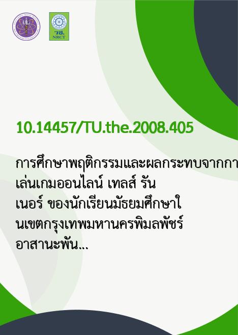 | Title | การศึกษาพฤติกรรมและผลกระทบจากการเล่นเกมออนไลน์ เทลส์ รันเนอร์ ของนักเรียนมัธยมศึกษาในเขตกรุงเทพมหานคร |