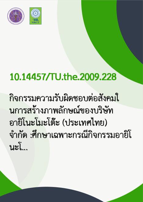 | Keyword | ภาพลักษณ์องค์การ, ความรับผิดชอบต่อสังคม, การสร้างภาพลักษณ์, บริษัทอายิโนะโมะโต๊ะ |