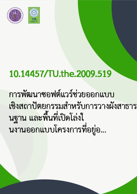 การพัฒนาซอฟต์แวร์ช่วยออกแบบเชิงสถาปัตยกรรมสำหรับการวางผังสาธารณูปโภคพื้นฐาน และพื้นที่เปิดโล่งในงานออกแบบโครงการที่อยู่อาศัย ประเภทบ้านแถวพรพิศ แก้วลาย |