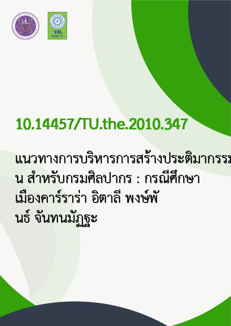 แนวทางการบริหารการสร้างประติมากรรมสลักหิน สำหรับกรมศิลปากร : กรณีศึกษาเมืองคาร์ราร่า อิตาลี /พงษ์พันธ์ จันทนมัฏฐะ |