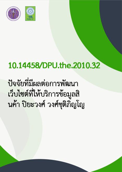 ปัจจัยที่มีผลต่อการพัฒนาเว็บไซต์ที่ให้บริการข้อมูลสินค้า /ปิยะวงศ์ วงศ์ชุติภิญโญ |
